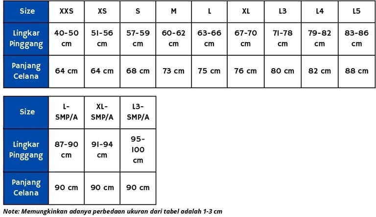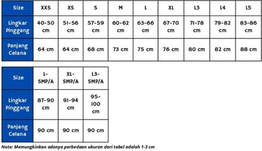 Ukuran Celana Olahraga SD