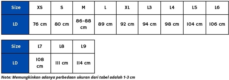 Ukuran Kaos Olahraga SD