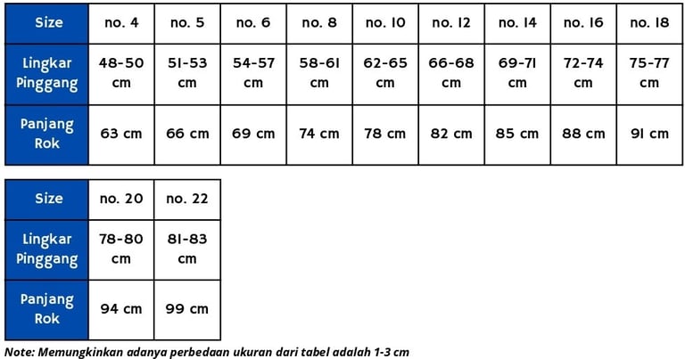 Ukuran Rok SD